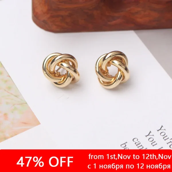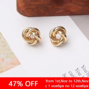 Tiny Metal Stud Earrings for Women Gold Color Twist Round Earrings Small Unusual Earrings boucles d’oreilles Fashion Jewelry